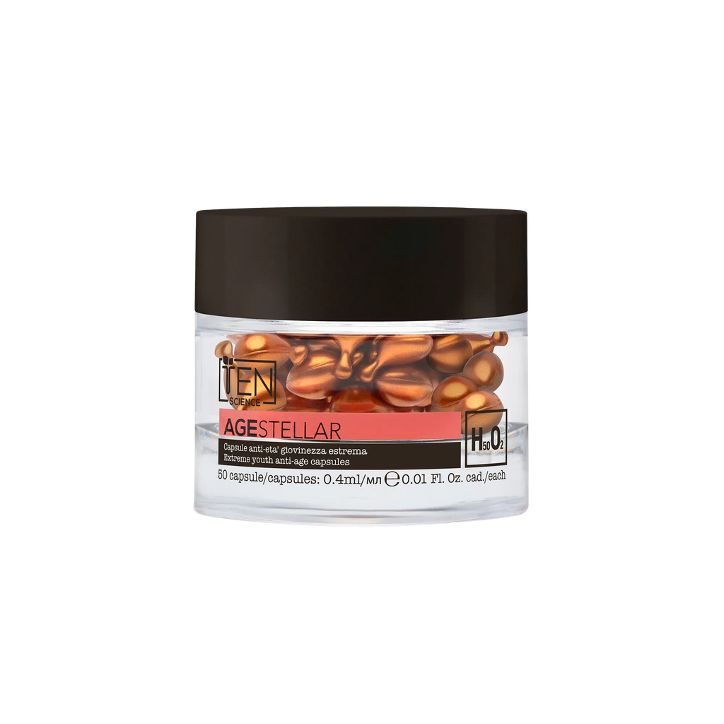 Le Capsule Age Stellar racchiudono un concentrato di giovinezza in formato monodose. Ogni capsula contiene una formula ultra-concentrata che agisce intensivamente su rughe, elasticità e compattezza per un effetto anti-età estremo.